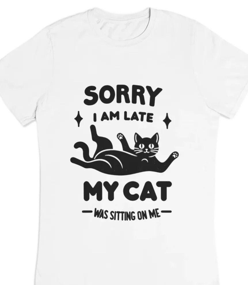 white t-shirt with black cat fun design